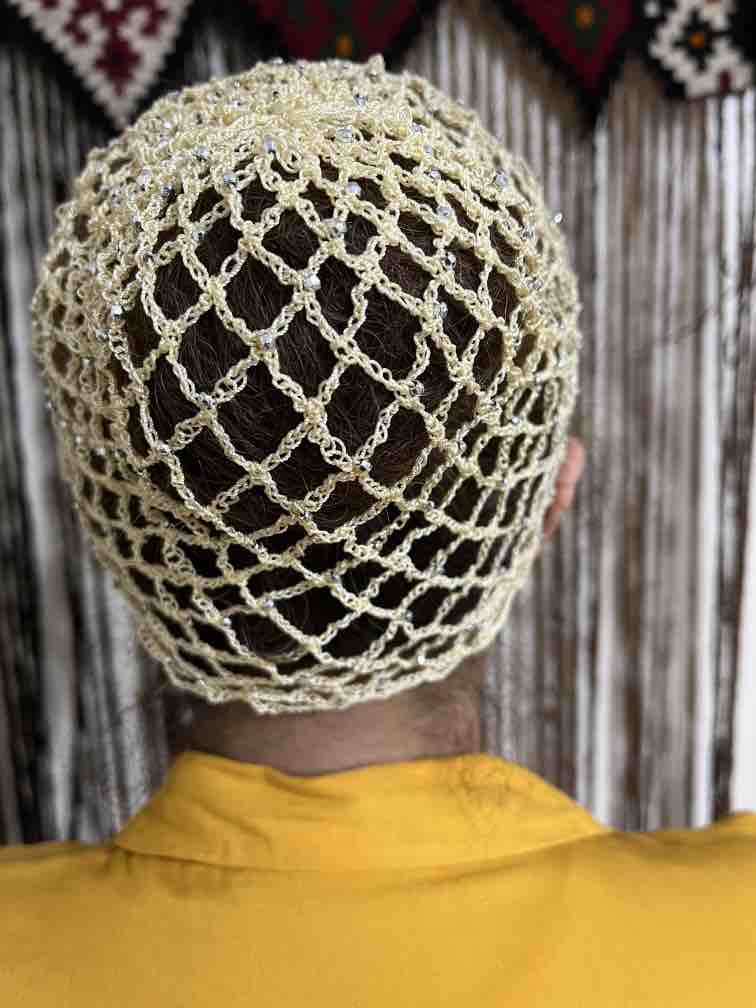 بافته شده با دست قلاب بافی و مرواریدها بافته شدند به کار هم با تل پهن موجوده و هم با تل باریک رنگ بندی در عکسها میتونید ببینید سایز کیسه مو مختلف هستند کوچک و بزرگ